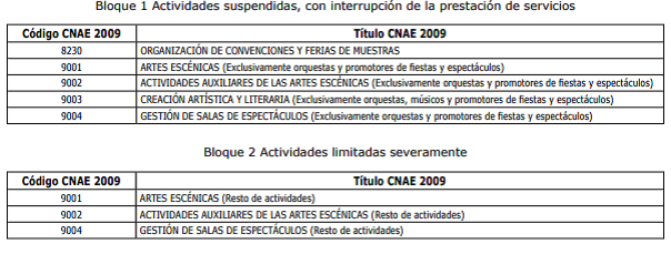 Bloque 1: Actividades suspendidas, con interrupción de la prestación de servicios.