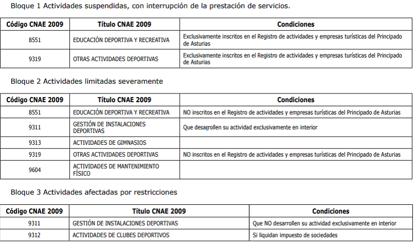 Bloque 1: Actividades suspendidas, con interrupción de la prestación de servicios.